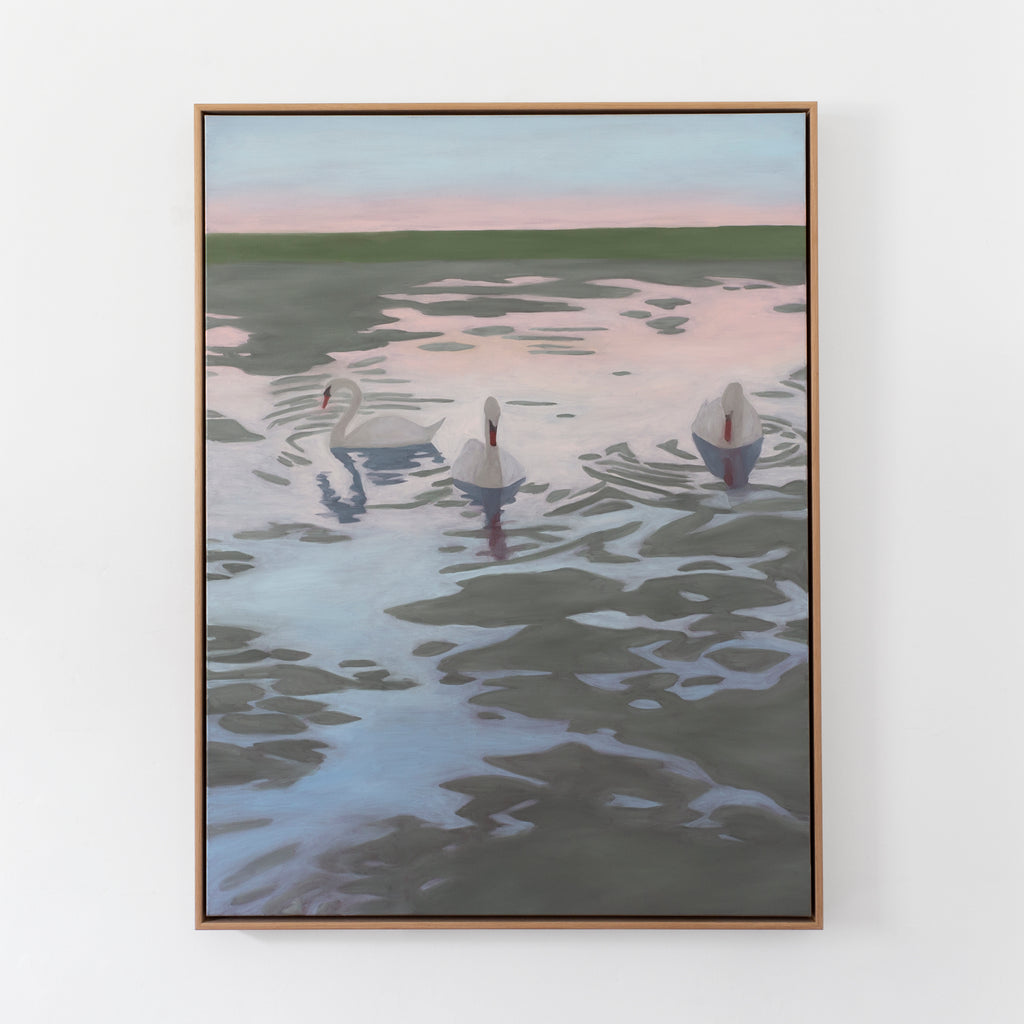 ‘Ebbs & Floods' is full of fresh spring air, rain and mud, flowers escaping from the ground; rivers, salt water, and swans gliding in peach sunsets. With titles 'Wishbone', 'Lilac', 'Curling in Ribbons', 'Flowers Always Know the Right Time', 'Half Moon', and '€3.49 Clementines' from lines in Jane's poems.